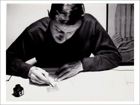 Werner Schreib beim Zeichnen, ca. 1965